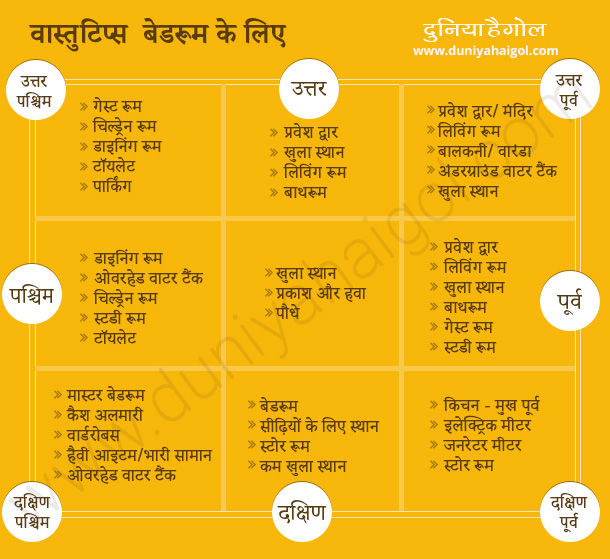 Ideal Vastu direction for room: bedroom includes toilet and hall includes dining.
